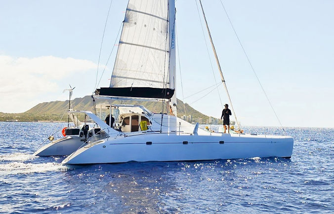 Our catamaran, Malolo, is built for the adventurers at heart. Malolo's sleek design and rotating mast make it optimal for blue water sailing. Come experience the Hawaiian Islands in the most unique way, multi-day overnight sailing charters.